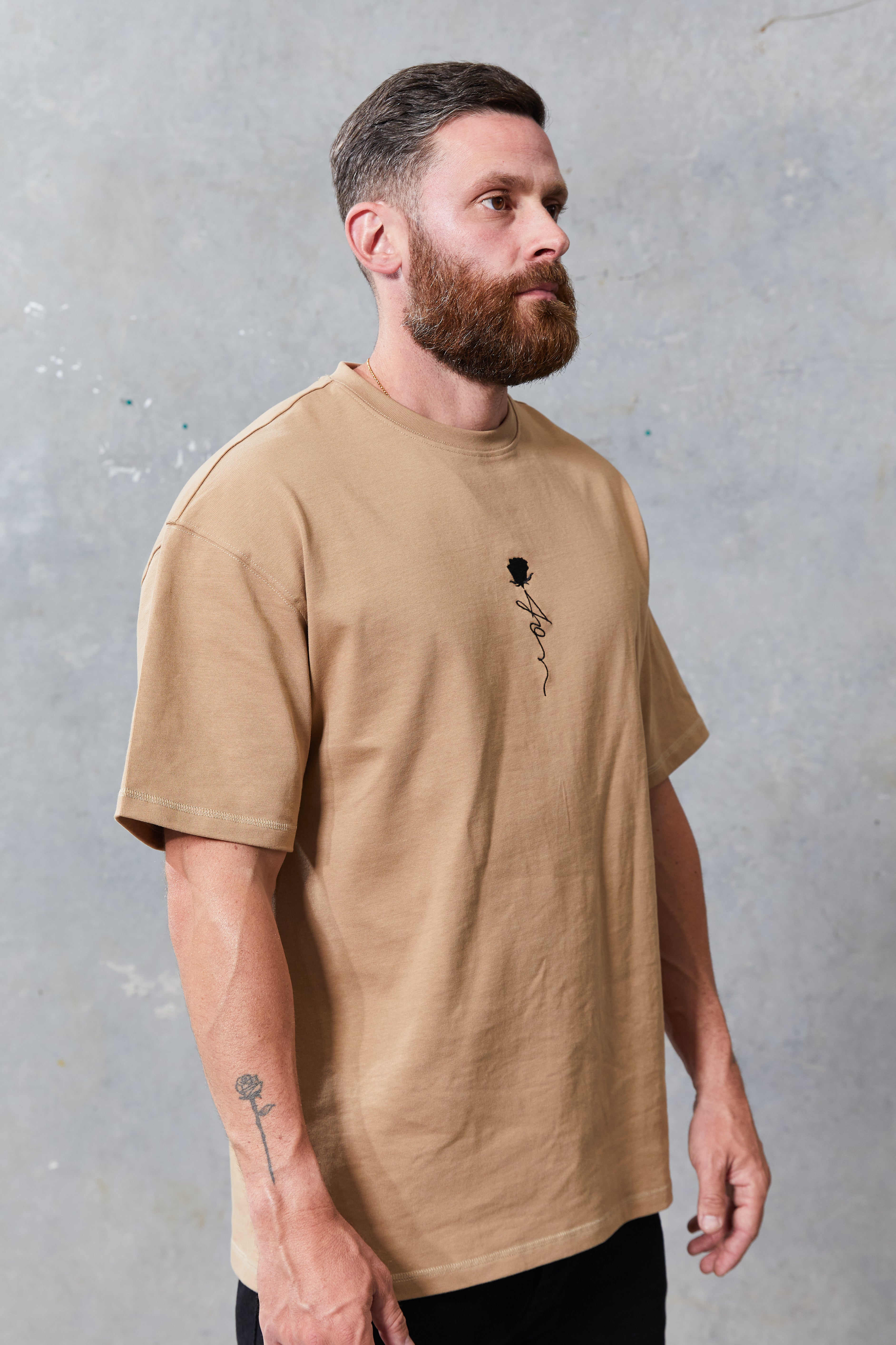 Elevate your casual wardrobe with our Jon Oversized Brown T-shirt featuring a unique black rose Jon logo embroidered on the chest. Made from a luxurious 300 GSM heavyweight fabric that ensures both comfort and durability. Round neckline for a classic look Embroidered Jon logo Crafted from ...